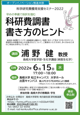 下記のとおり、科学研究費獲得支援セミナー2022を開催いたします。